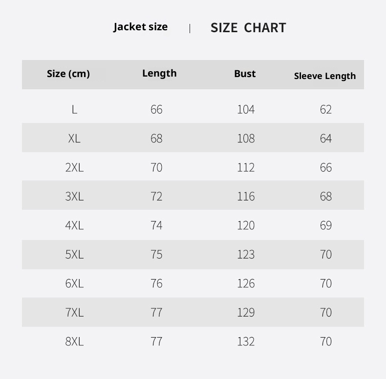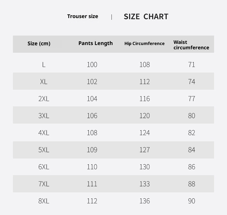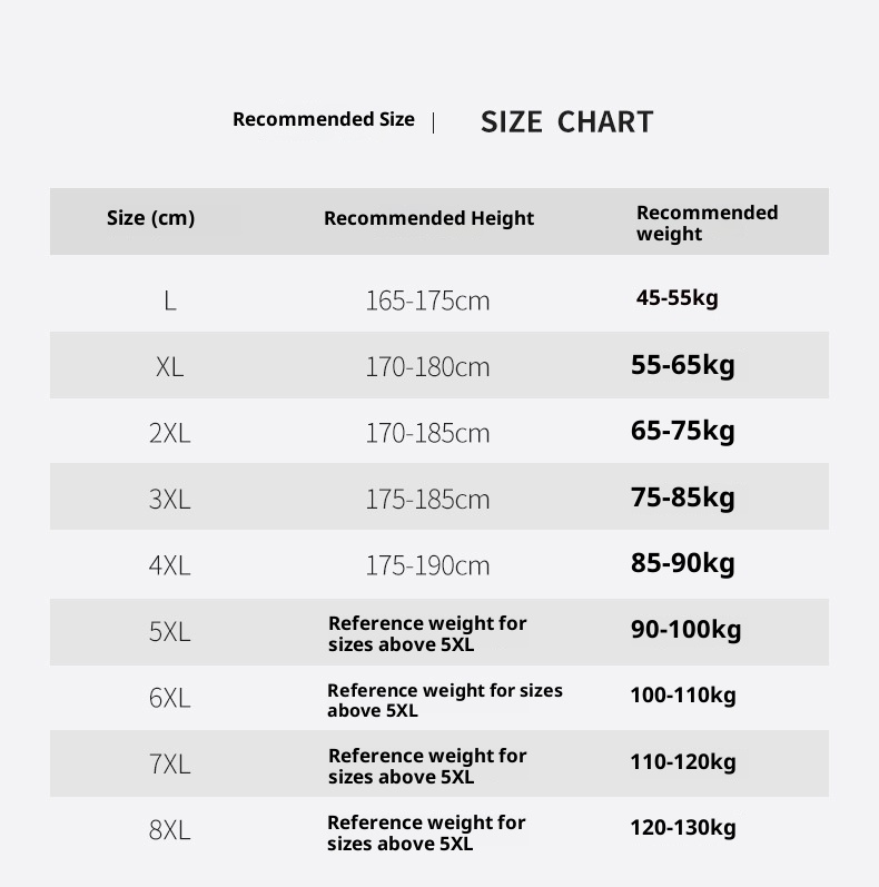 Size: L,XL,2XL,3XL,4XL,5XL,6XL,7XL,8XL